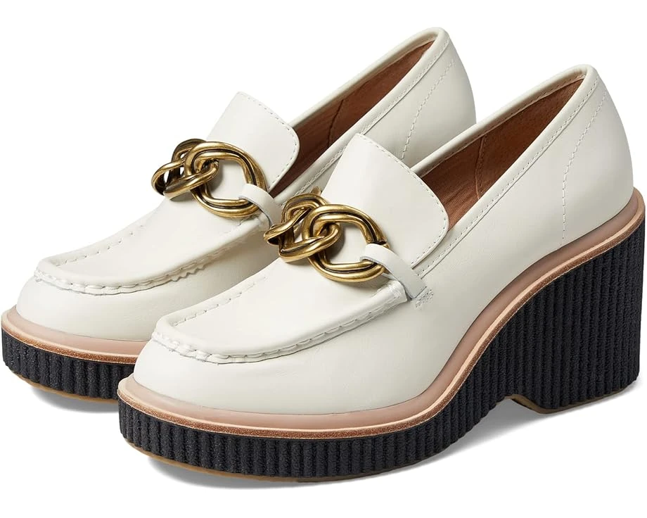 Dress in the classy chic style chunky heels, Dolce Vita® Brenan loafers adorned with goldtone oversized chain detail on the vamp.