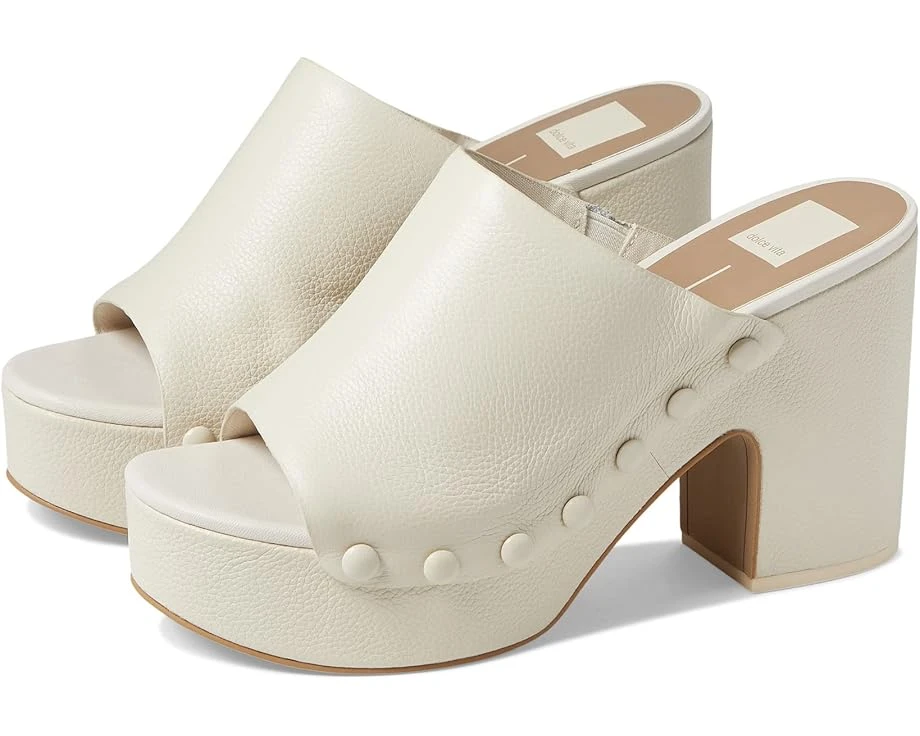 Easy slip-on style. Open, round toe silhouette. Studded accent on the sides. Chunky block heel. Recycled synthetic outsole. Imported. Measurements: