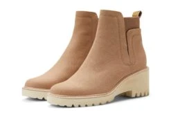 - Step out in bold, fierce style with the Dolce Vita® Huey platform ankle boots. The pull-on booties are crafted from a leather or suede upper with stretch goring at the ankles and a chunky lug platform wedge heel.