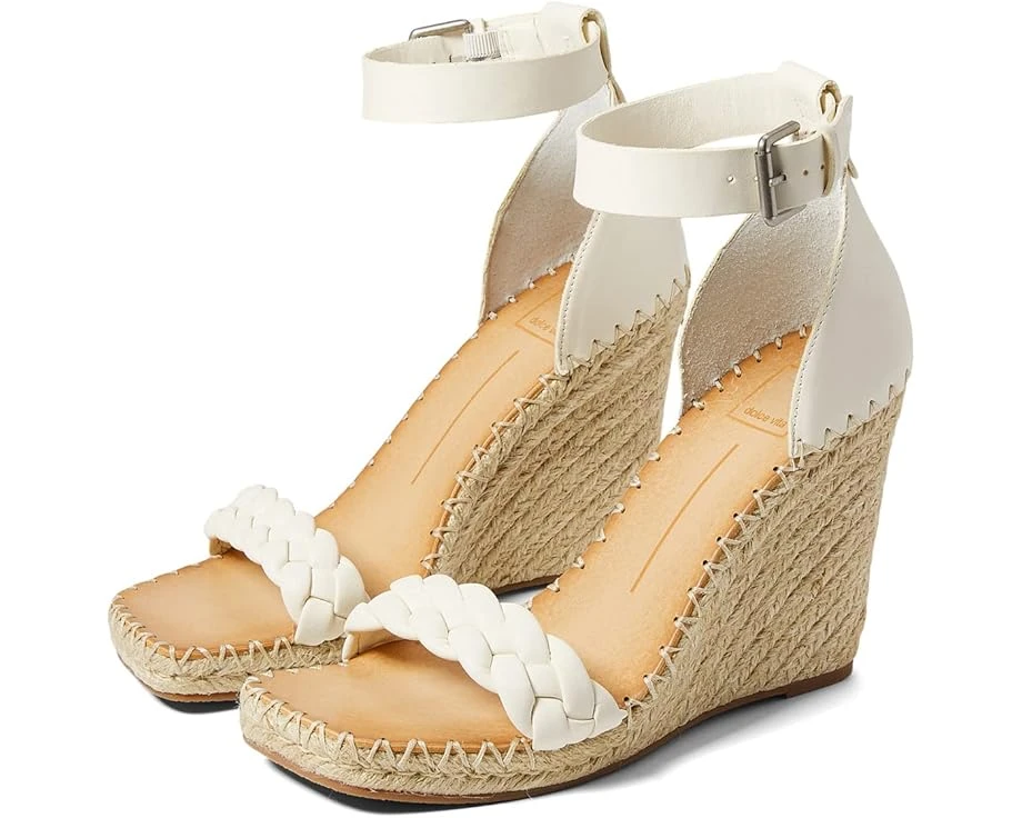 A pair of classic Dolce Vita® Nilton heels for any occasion.SKU: #9624228Leather and synthetic upper.Leather/synthetic lining and insole.Slip-on/buckle strap closure.Square-shaped toe design.Single braid strap design at the front.Stitched detailing along the sides.Wedge heels.Synthetic outsole.Imported.Product measurements were taken using size 9, width M. Please note that measurements may vary by size.Weight of footwear is based on a single item, not a pair.Measurements: