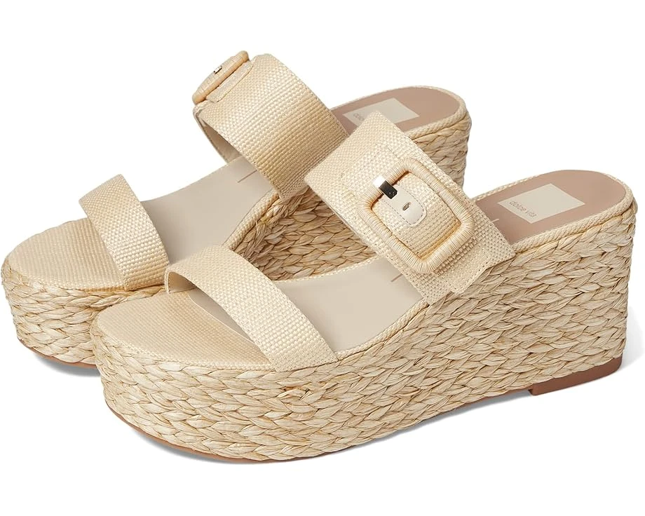 Espadrille-style chunky wedge heel.